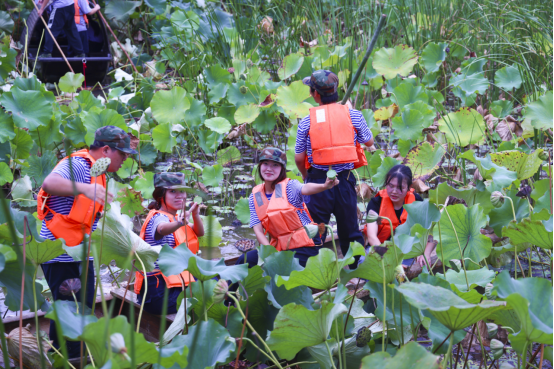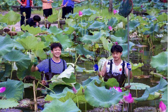 来自宁夏的建筑工程学院2023级学生白雅蓉,是第一次吃到莲蓬,除了开心之外,她也收获了更多的感悟:“看到大家不怕泥泞去采摘莲蓬的劲头,让我感受到团队协作的力量,也懂得在未来人生道路上,要想收获果实,就必须付出劳动。”