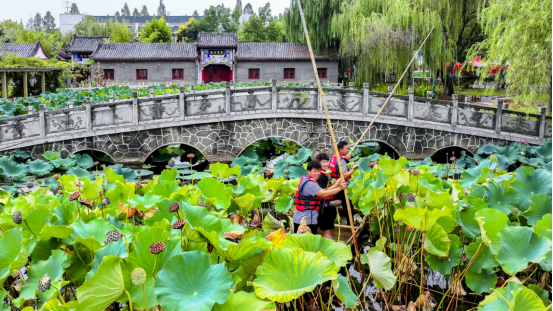新生在校园内泛舟采莲