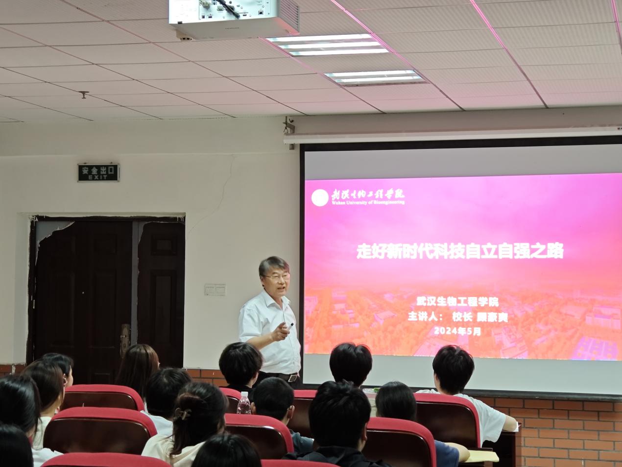 本网讯(通讯员 陈文)5月29日,校长顾豪爽教授以《走好新时代科技自立自强之路》为题,在钱学森大楼212多功能教室为艺术学院、音乐学院的学生党员、发展对象、入党积极分子讲授了一堂精彩的“形势与政策”课。