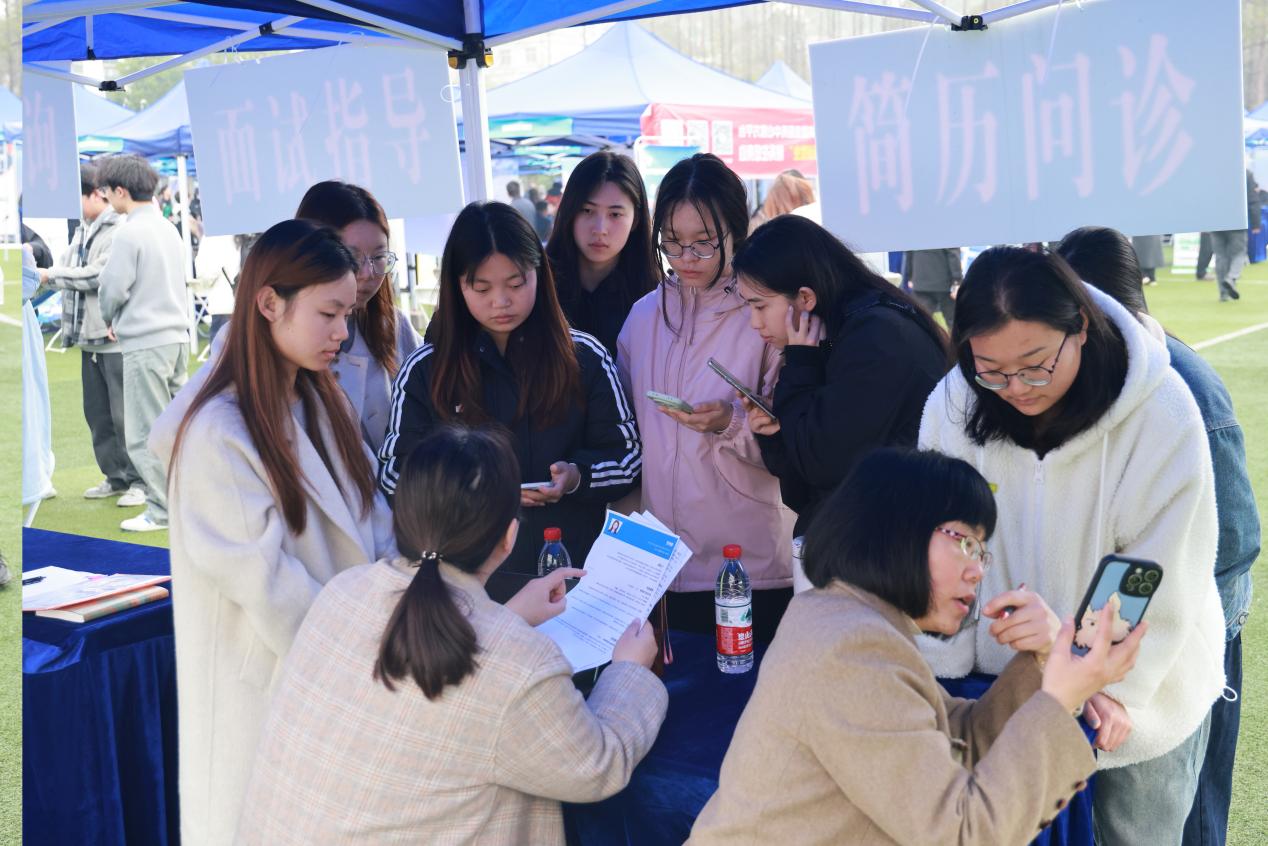 会场特设“一站式就业服务站”,校就业指导中心邀请企业HR及职业规划师为毕业生提供简历诊断、面试模拟等服务。