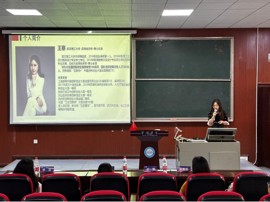 本次宣讲以分享交流会的形式开展。邀请武汉君珀珠宝有限公司董事长、武汉理工大学博士生研究生王寒女士以《智珀云智造—服装工业互联网平台》作为案例进行项目分享,她从项目背景、产业发展痛点与结构升级方向和产品实施路径等方面为在场学生代表生动再现了自己求学期间的创业历程和体会感悟,现场不时响起热烈的掌声。