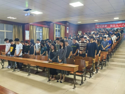 主题活动中,主持人王高勇带领大家一同回顾了“九一八”事变的历史背景、事件经过以及事变带来的巨大影响和历史意义。92年过去了,历史和苦难不应当被忘却,大家整装肃立,为“九一八”事变中逝世的同胞默哀三分钟,向所有先辈致敬,用无声的语言表达对革命先辈的哀思,气氛庄严而凝重。