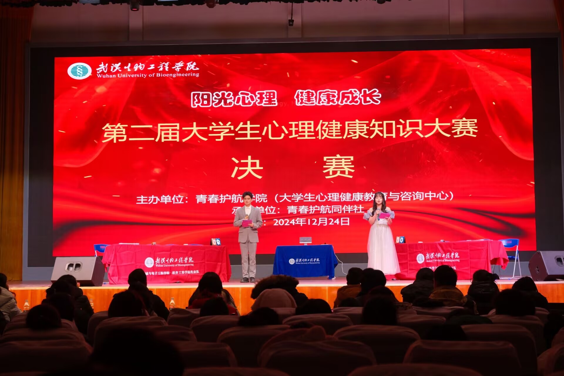 本网讯(通讯员 欧欣怡)12月24日晚,“阳光心理 健康成长”MILE米乐第二届大学生心理健康知识大赛决赛在大礼堂举行。校长助理余仕良出席大赛并致辞,学生工作处、学生公寓管理与服务中心、青春护航学院负责人以及全体心理健康教师,各学院心理辅导员和学生代表800余人参会。